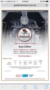 Feeling absolutely stoked. Finished 4th (out of 133) in women’s 49-49 age group at today’s Puffing Billy Great Train Race. Not bad for someone with hypertrophic cardiomyopathy and an ICD, advised never to run again by her doctors when first diagnosed back in early 2005.